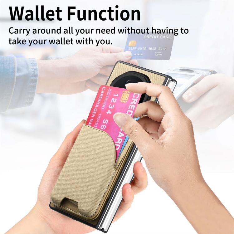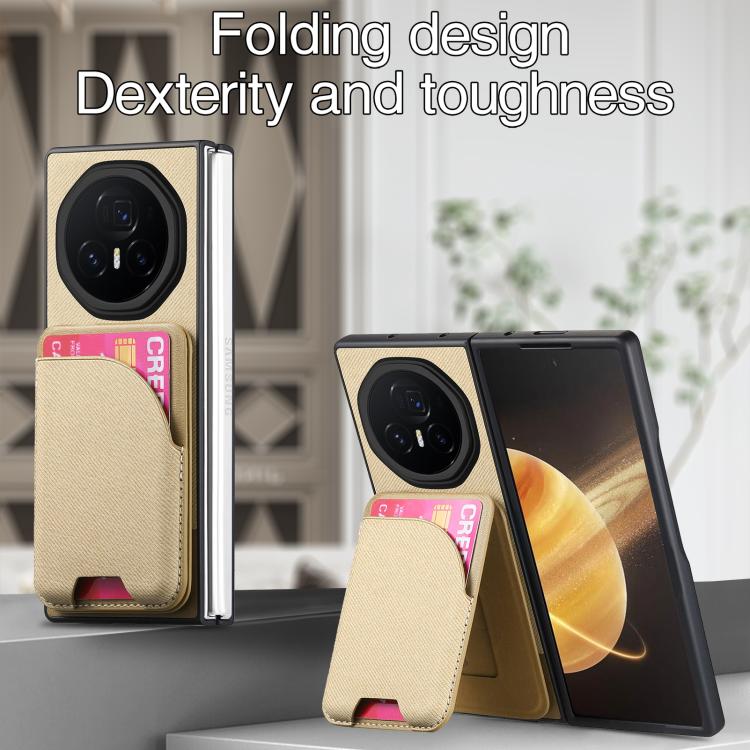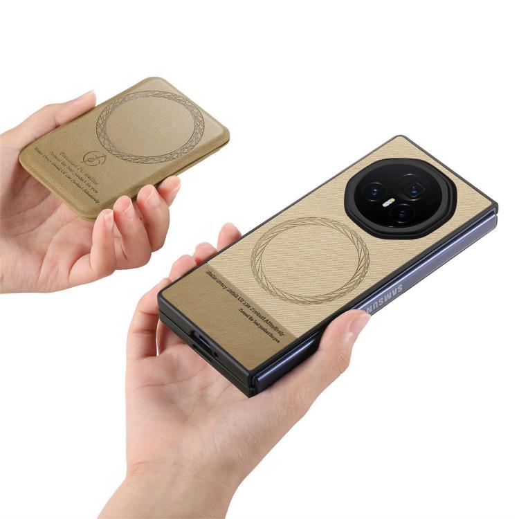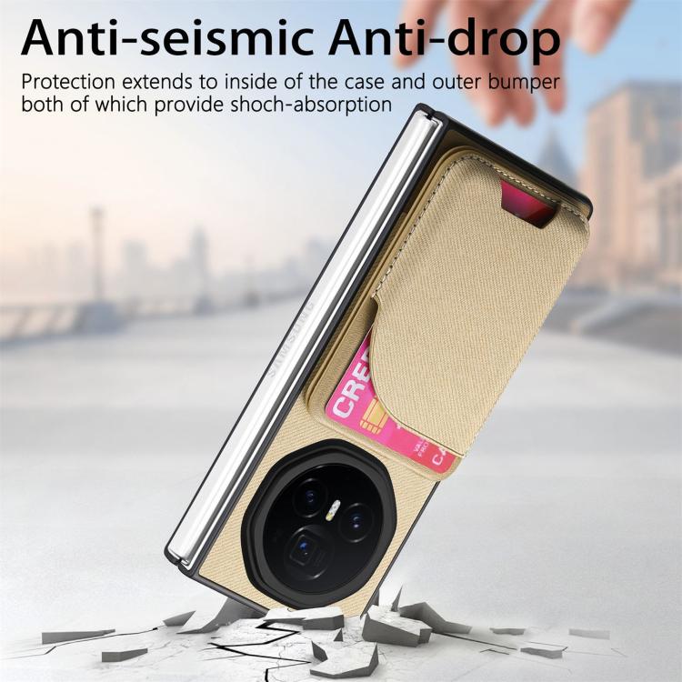 Funda Magnética con Tarjetero de Piel y Sarga para Honor Magic V3 (Caqui)