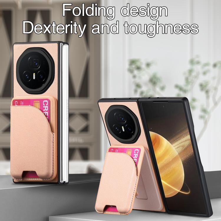Funda Magnética para Honor Magic V3 con Tarjetero de Piel y Sarga (Rosa)
