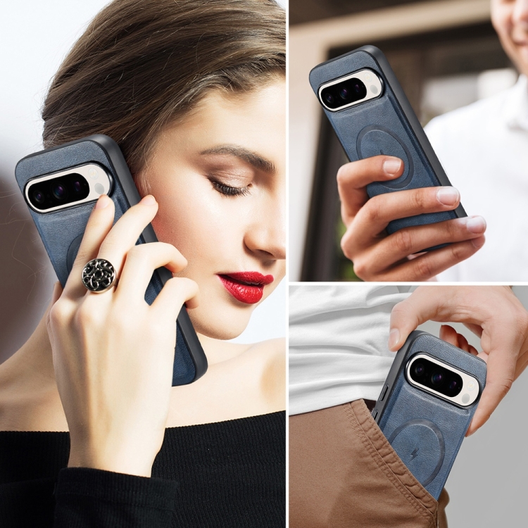 Funda Magnética Fierre Shann Textura Piel de Vaca para Google Pixel 9/9 Pro (Azul)