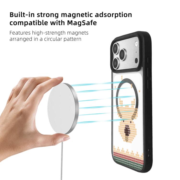 Funda magnética resistente con borde negro pintado de la serie navideña para iPhone 17 Pro (Ciervo de punto)