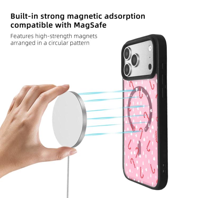 Funda magnética resistente con borde negro pintado de la serie navideña para iPhone 17 Pro Max (rosa dulce semitransparente).