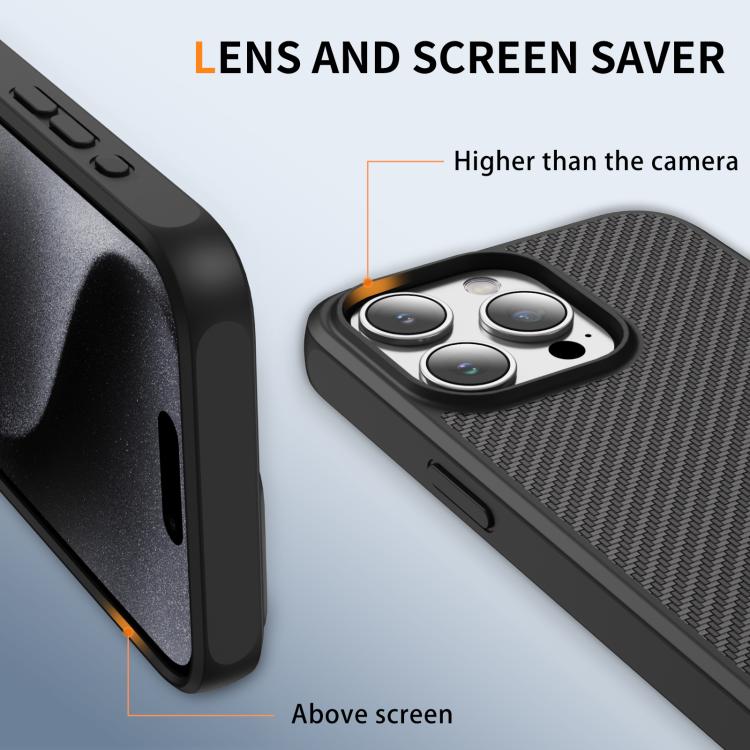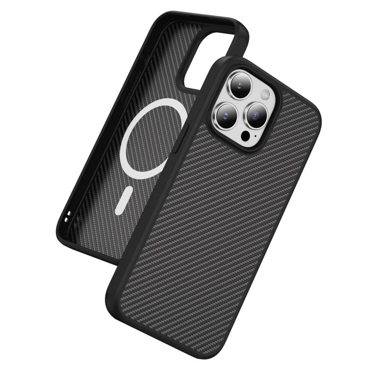 Funda MagSafe con textura de fibra de carbono y tacto suave para iPhone 15 Pro (negra)
