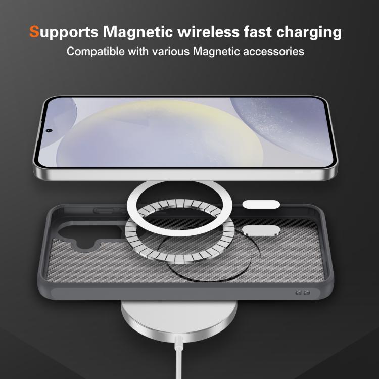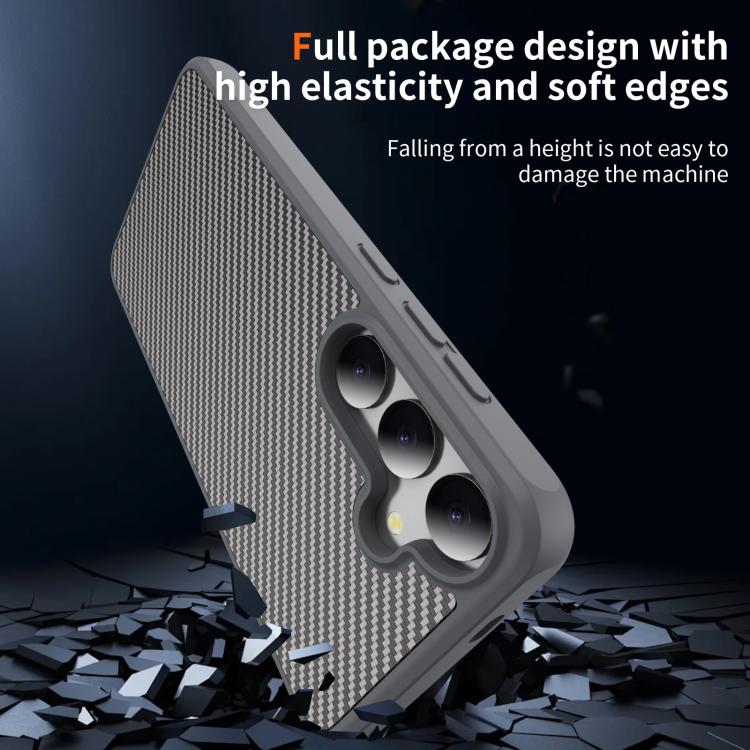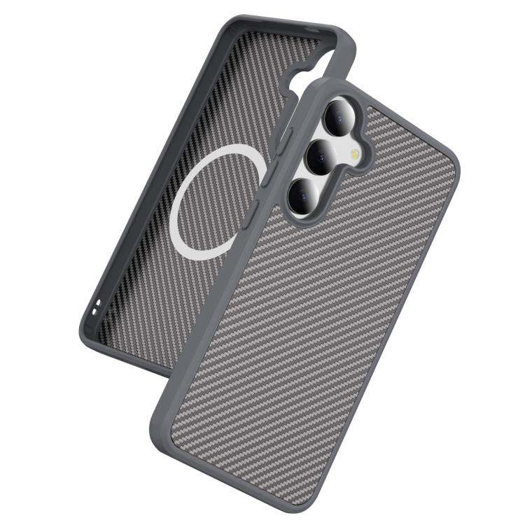 Funda MagSafe con textura de fibra de carbono y tacto suave para Samsung Galaxy S25/S24 5G (gris)