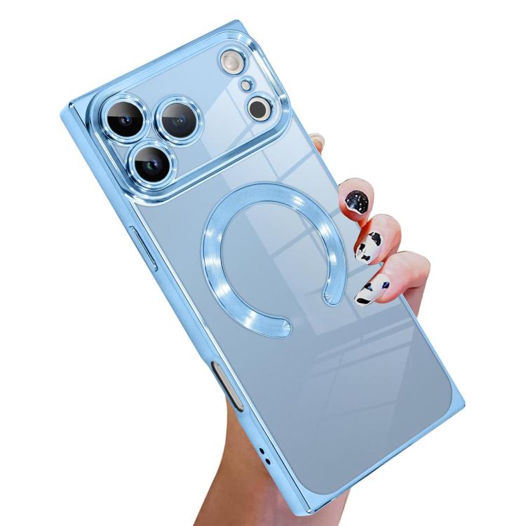Funda MagSafe de TPU con patrón de CD electrochapado cuadrado en ángulo recto para iPhone 17 Pro (Azul Sierra)