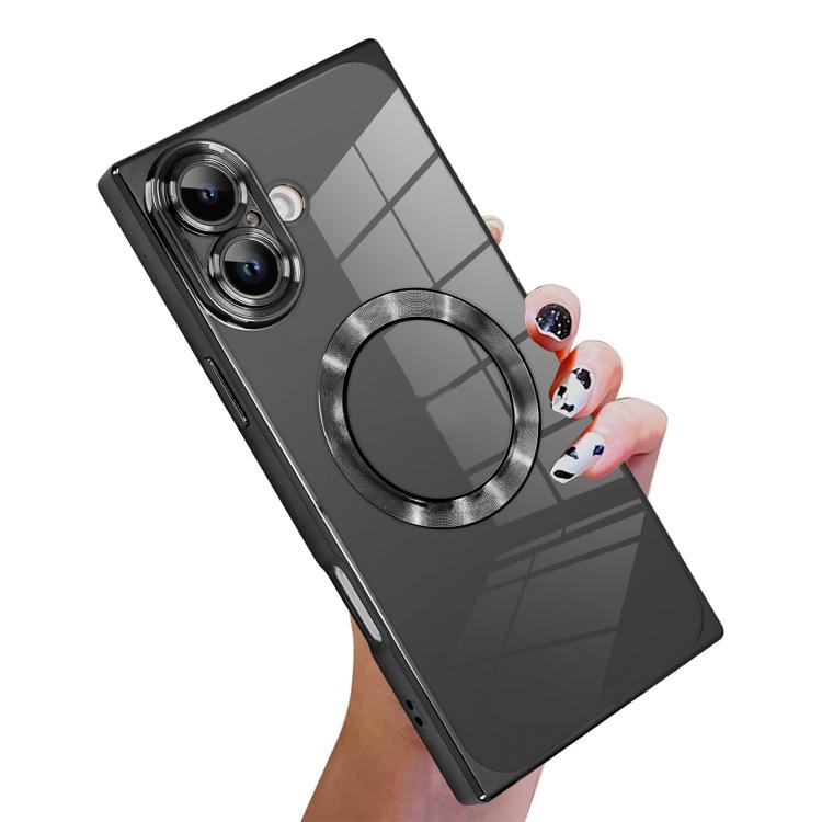 Funda MagSafe de TPU con patrón de CD electrochapado cuadrado y ángulo recto para iPhone 17 (negra)