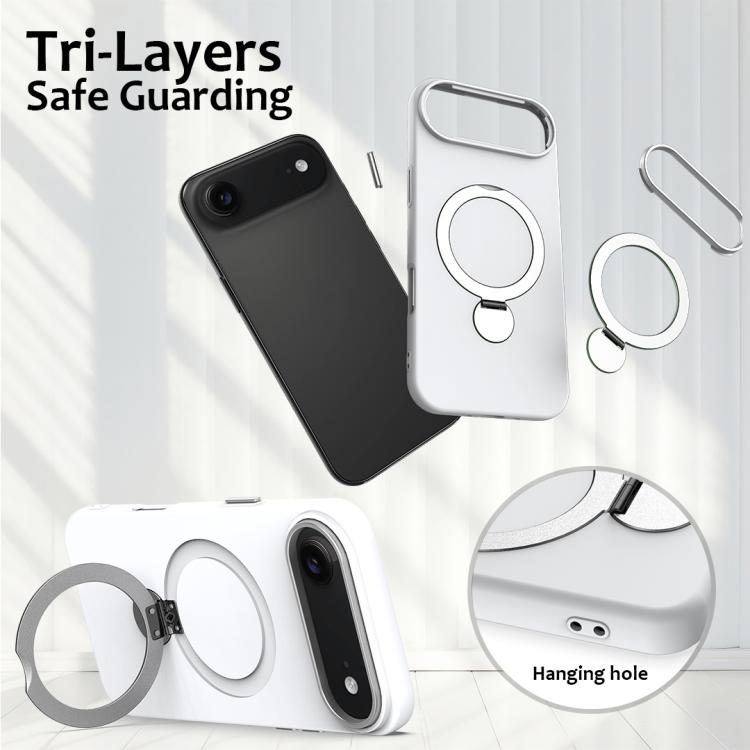 Funda MagSafe híbrida de TPU y PC para iPhone Air Gen1.5 con soporte de anillo pivotante (blanca)