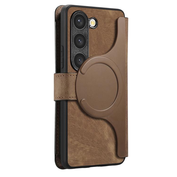Funda Neo MagSafe RFID antirrobo con cremallera para Samsung Galaxy S23 5G, estilo billetera de cuero retro (marrón)