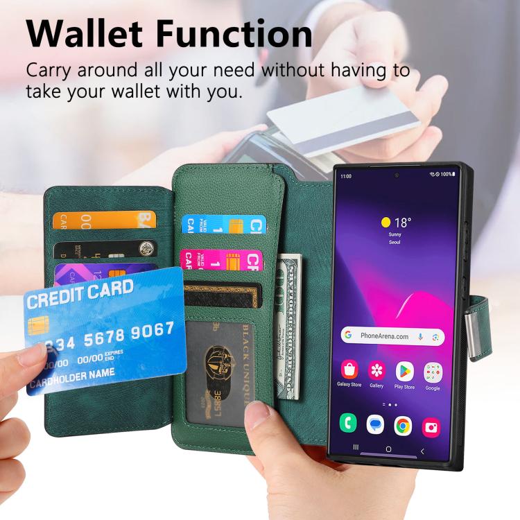 Funda Neo MagSafe RFID antirrobo con cremallera para Samsung Galaxy S25 Ultra 5G, de cuero estilo retro (verde)