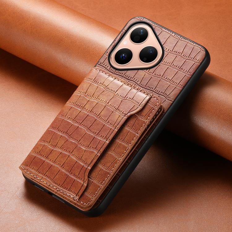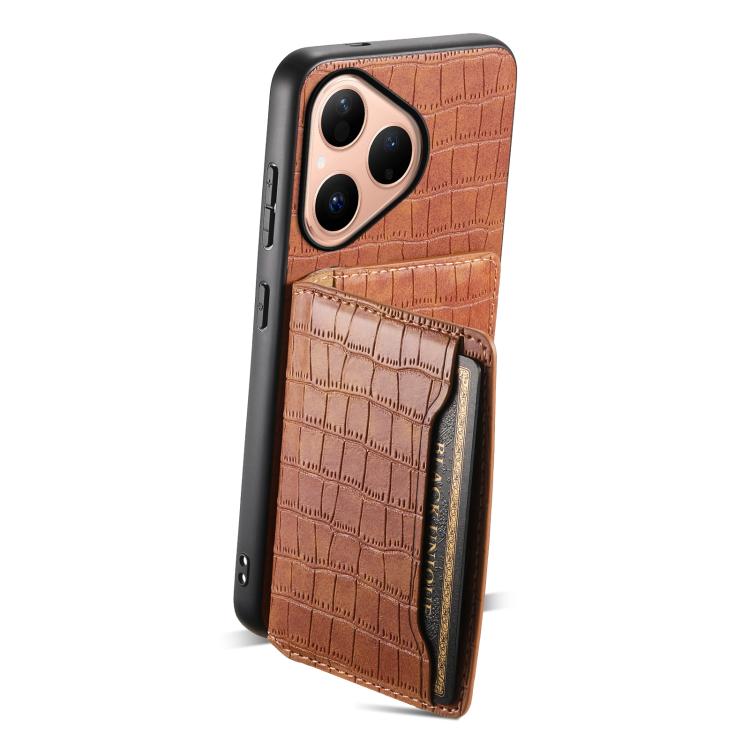 Funda para Huawei Pura 80 5G con textura de cocodrilo y diseño de cartera, cobertura total (marrón)
