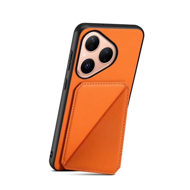 Funda para Huawei Pura 80 5G D04 con textura de becerro y ranura para dos tarjetas (naranja)