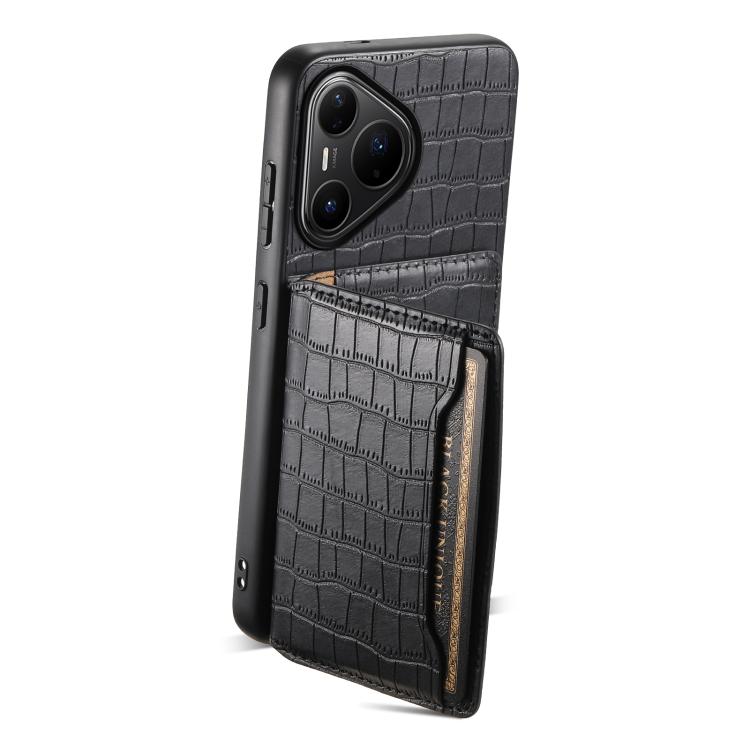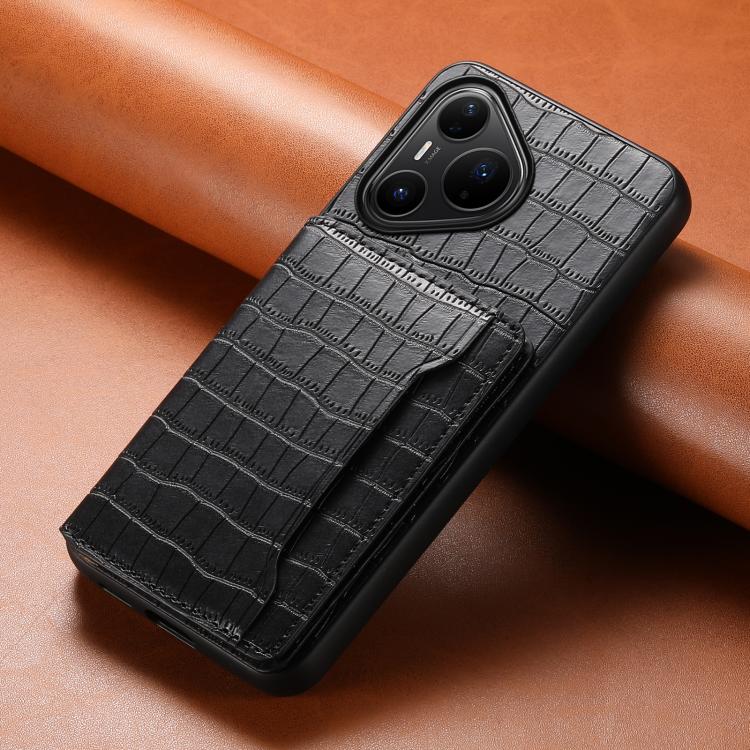 Funda para Huawei Pura 80 Pro / 80 Pro+ 5G con textura de cocodrilo y diseño de cartera, cobertura total (negra)