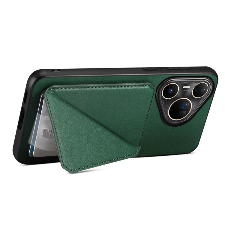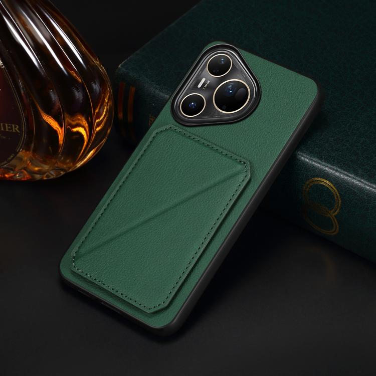 Funda para Huawei Pura 80 Ultra 5G D04 con textura de becerro y ranura para dos tarjetas (verde)