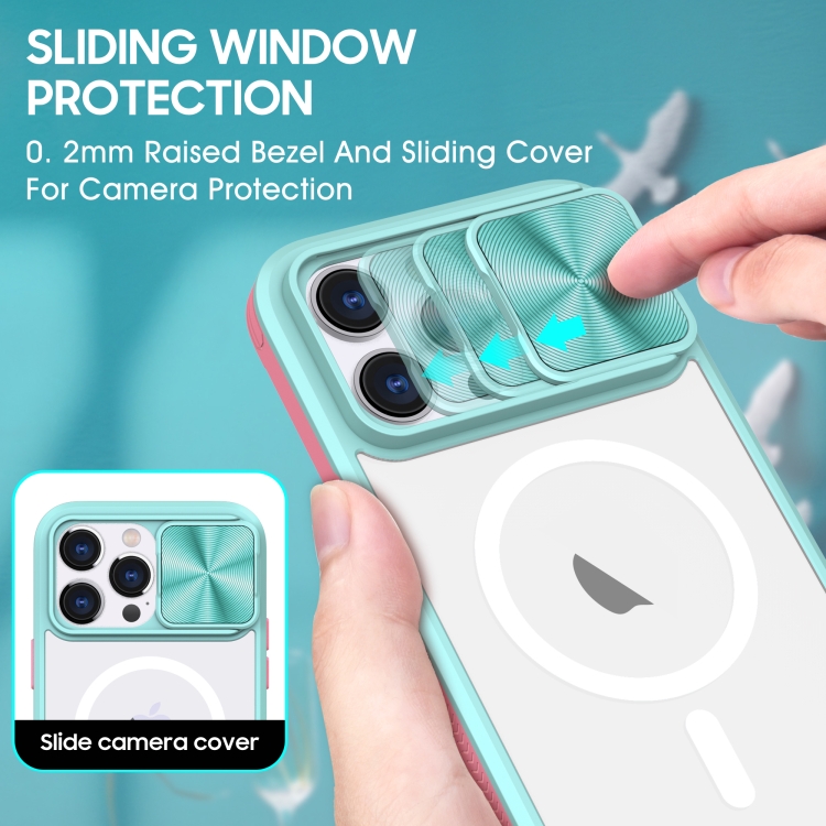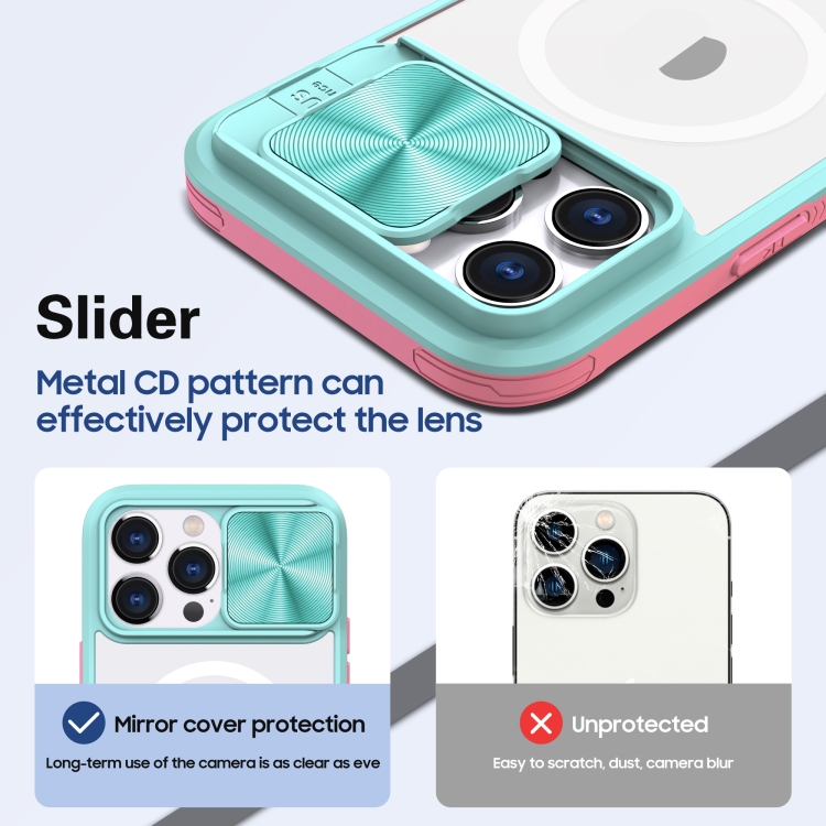 Funda para iPhone 11 Pro Max Cubierta Deslizante Acrílico PC TPU Magsafe (Azul + Rosa)