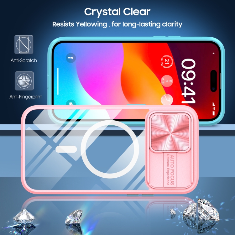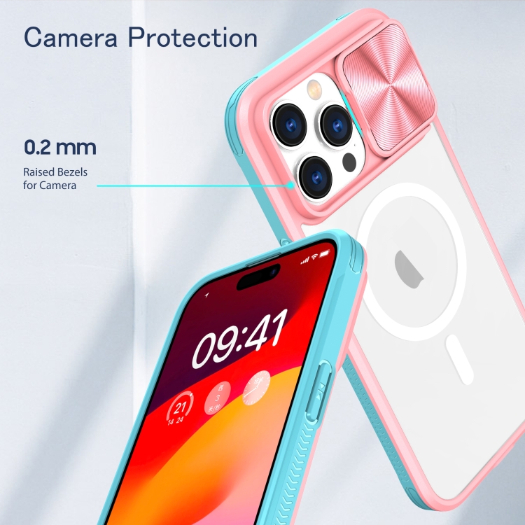 Funda para iPhone 11 Pro Max Acrílico Transparente PC TPU Magsafe Cubierta Lente (Rosa + Cian)