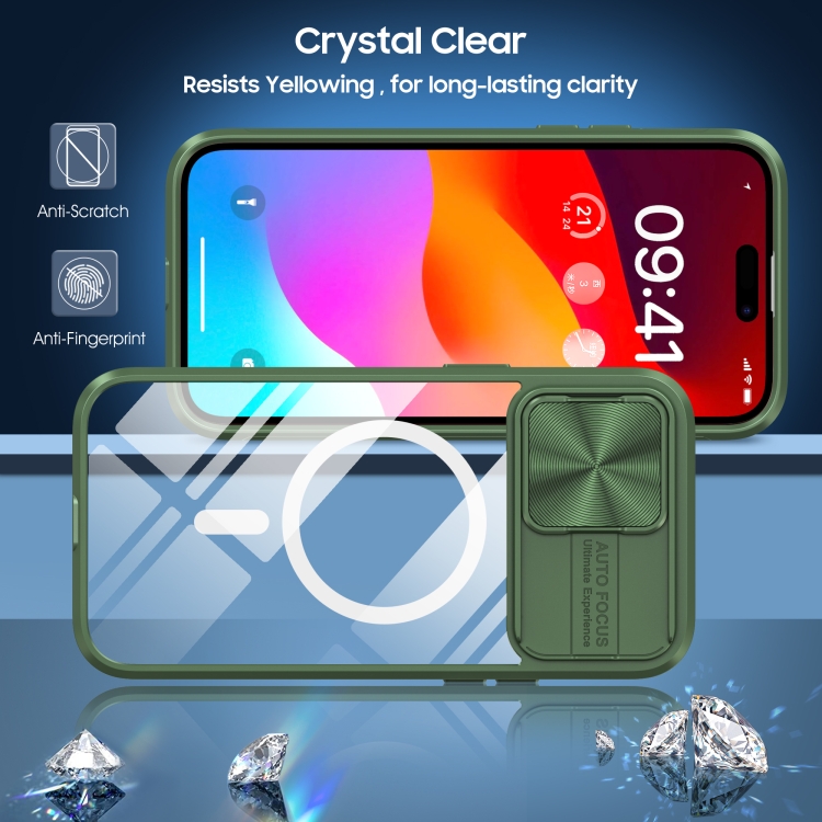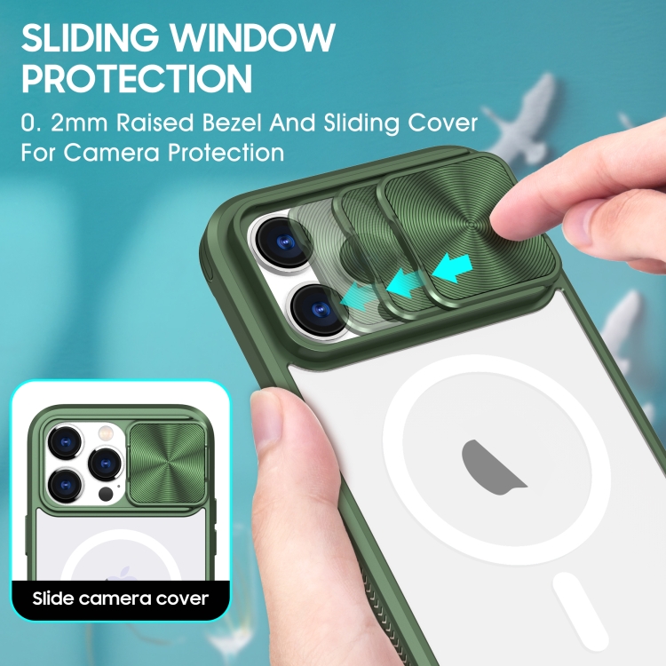 Funda para iPhone 11 Pro Max Cubierta Deslizante Acrílico PC TPU Magsafe Cobertura Total (Verde Oliva)
