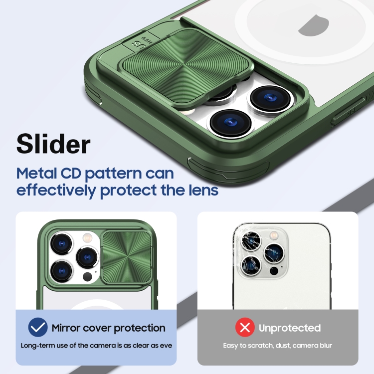 Funda para iPhone 12 Pro Max con Cubierta Deslizante Acrílico Transparente PC TPU Magsafe (Verde Oliva)