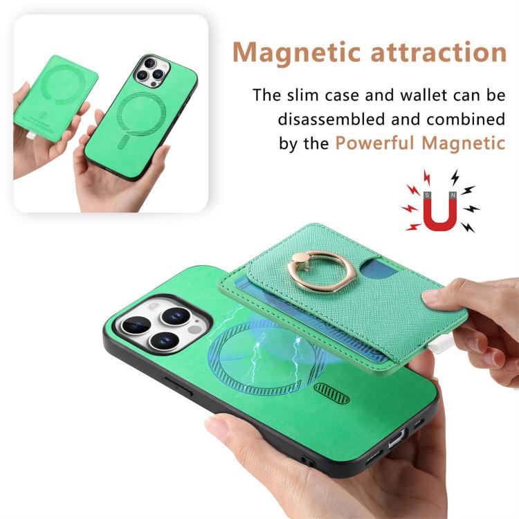Funda para iPhone 13 Pro Cuero con Ranuras para Tarjetas y Anillo (Verde)