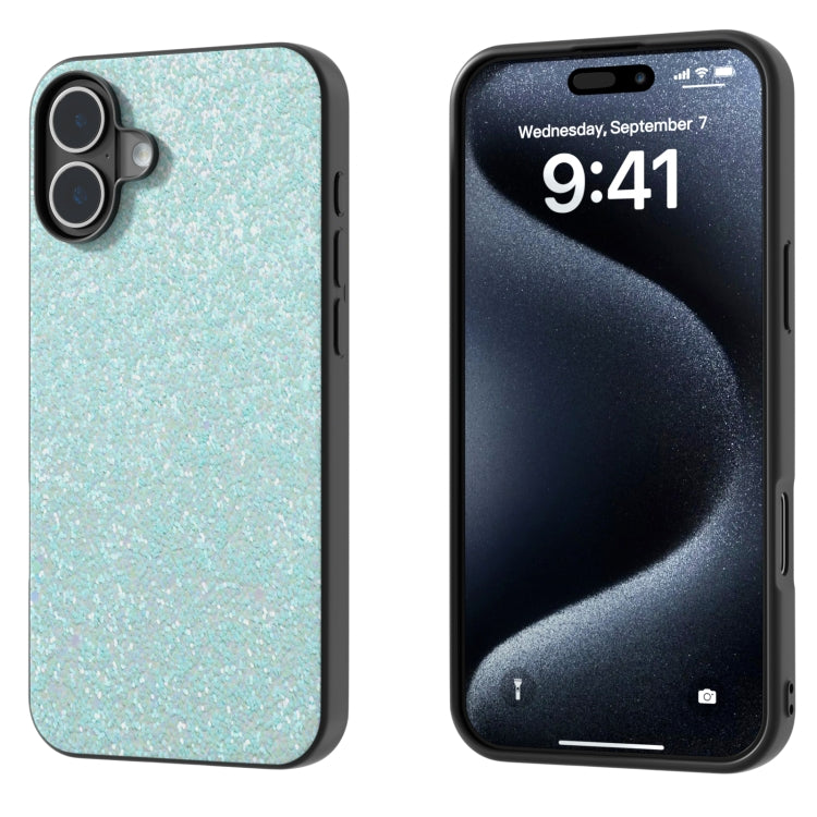 Funda para iPhone 16 con Marco Negro y Purpurina de Colores (Verde Claro)