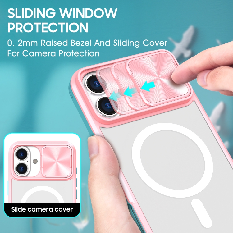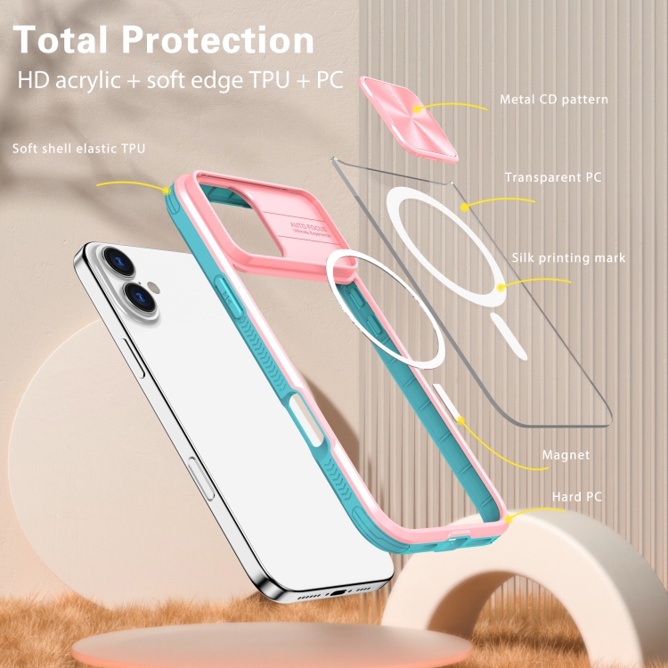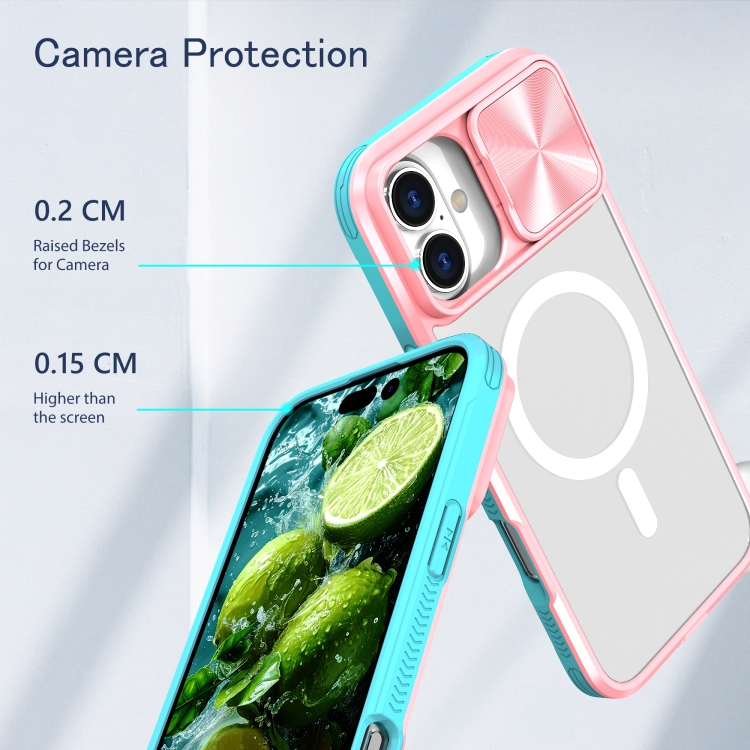 Funda para iPhone 16 Plus con Cobertura Total Cubierta Deslizante Lente Magsafe (Rosa + Cian)