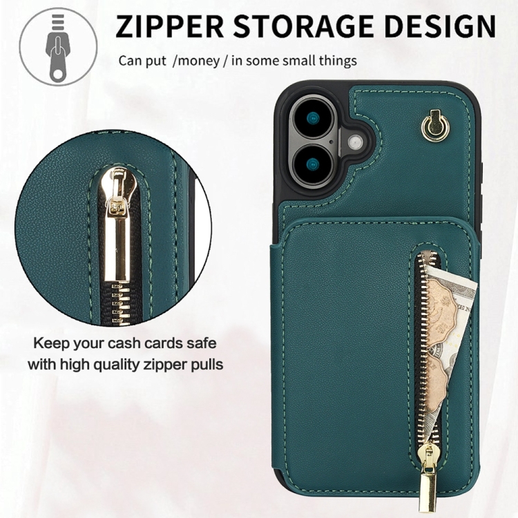 Funda para iPhone 16 Plus Ym006 con Cremallera y Doble Cordón (Verde)