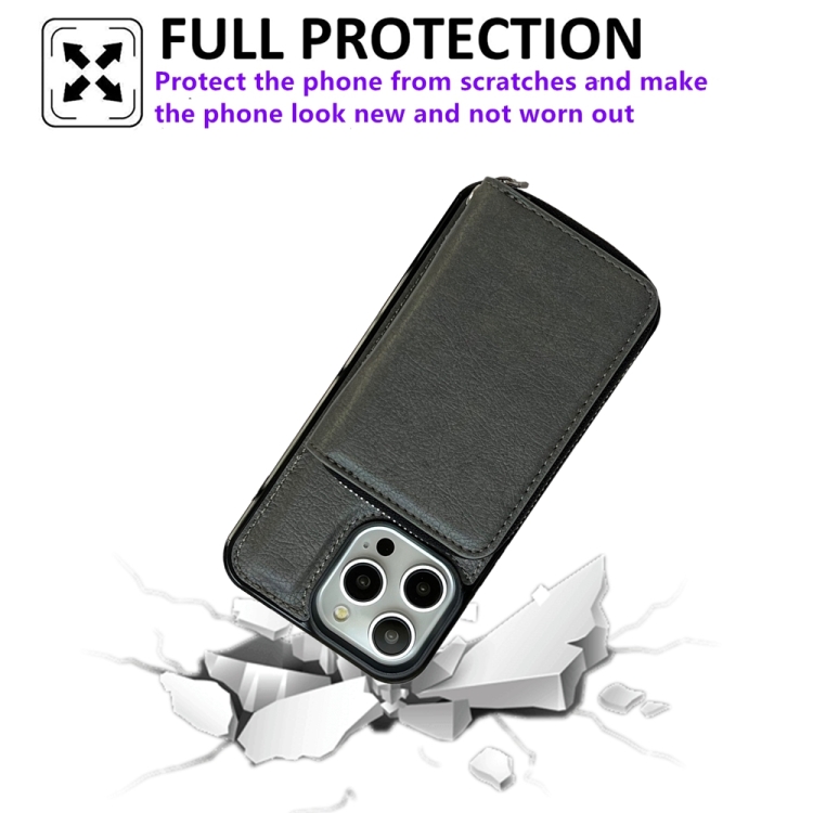 Funda para iPhone 16 Pro con Cremallera y 11 Ranuras para Tarjetas (Gris)