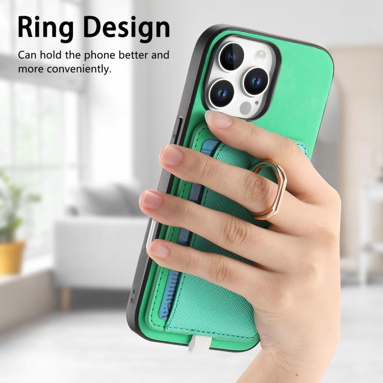 Funda para iPhone 16 Pro Cuero con Ranuras para Tarjetas y Anillo (Verde)
