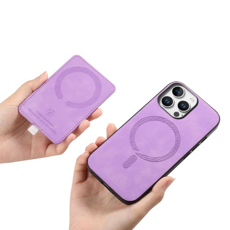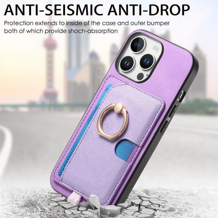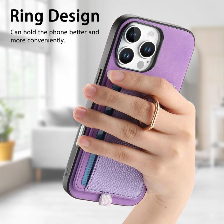 Funda para iPhone 16 Pro con Ranuras para Tarjetas y Diseño Retro de Cruz y Anillo Lateral (Morado)