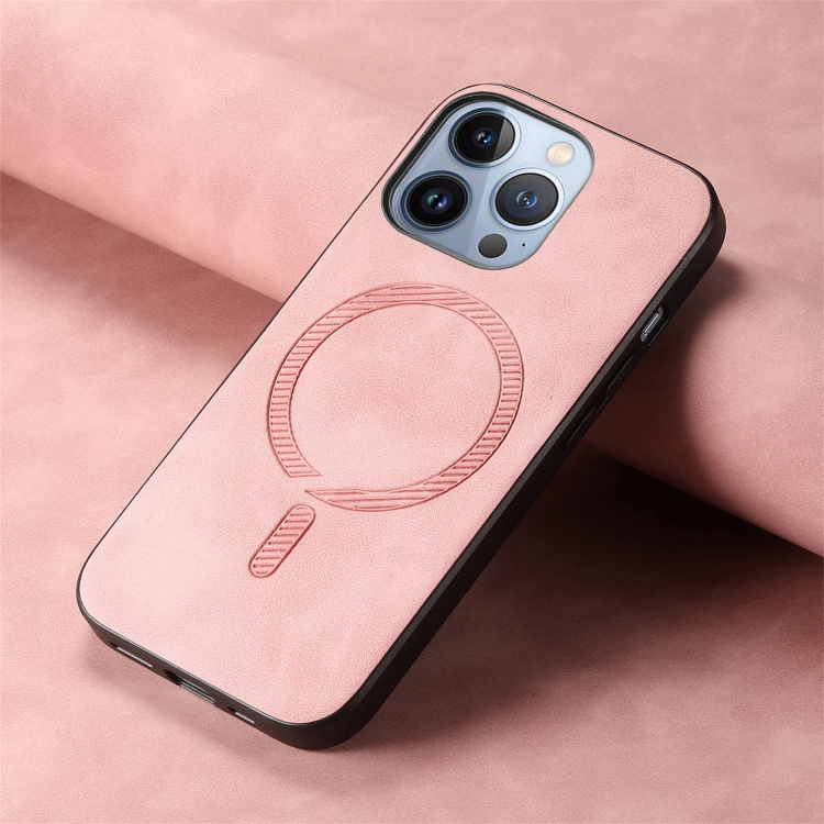 Funda para iPhone 16 Pro con Tapa Trasera de PU Magsafe Color Sólido Retro (Rosa)