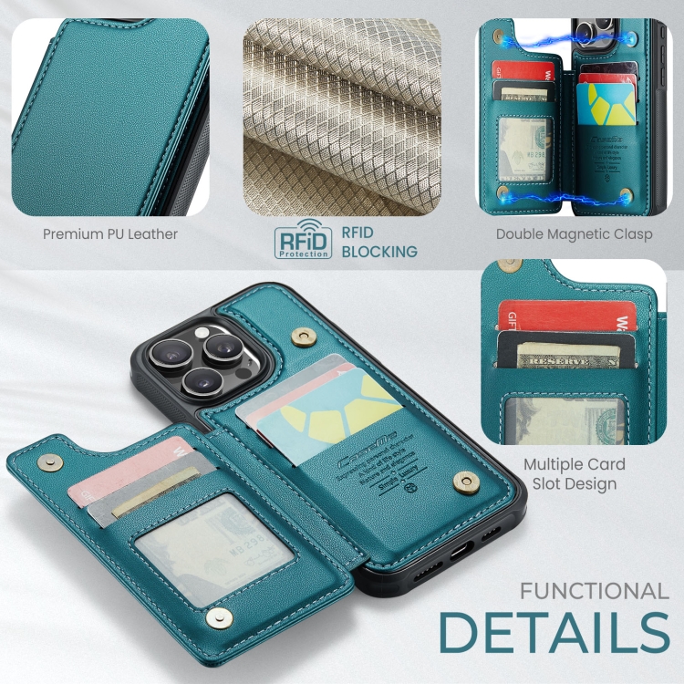Funda para iPhone 16 Pro Max Caseme C22 con Ranuras para Tarjetas y Protección Antirrobo Rfid (Verde)