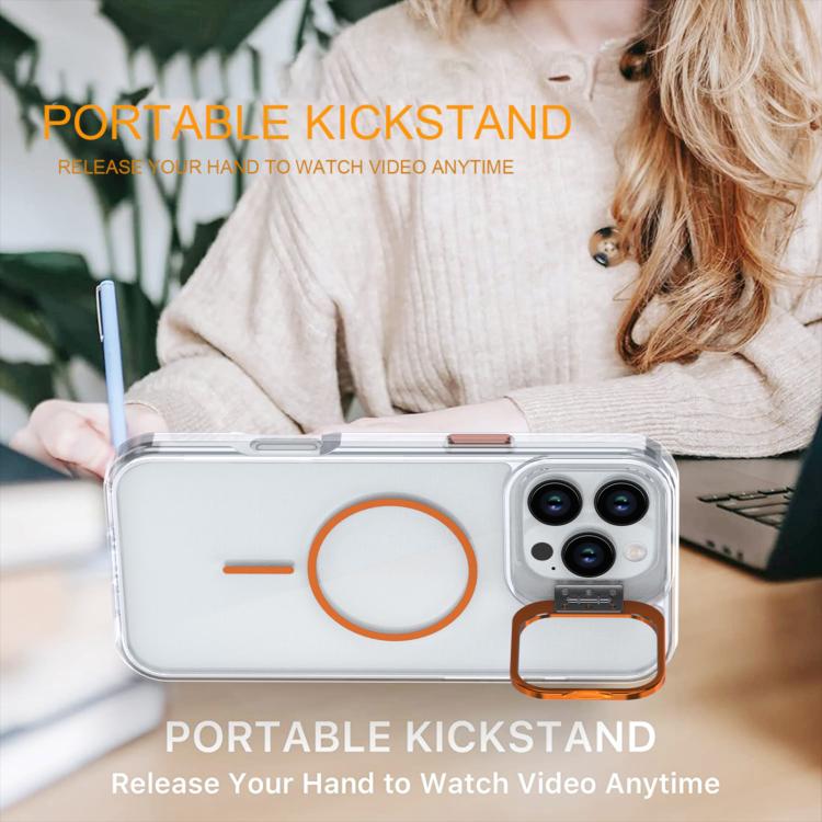 Funda para iPhone 16 Pro Max con marco de lente MagSafe transparente y brillante (azul)