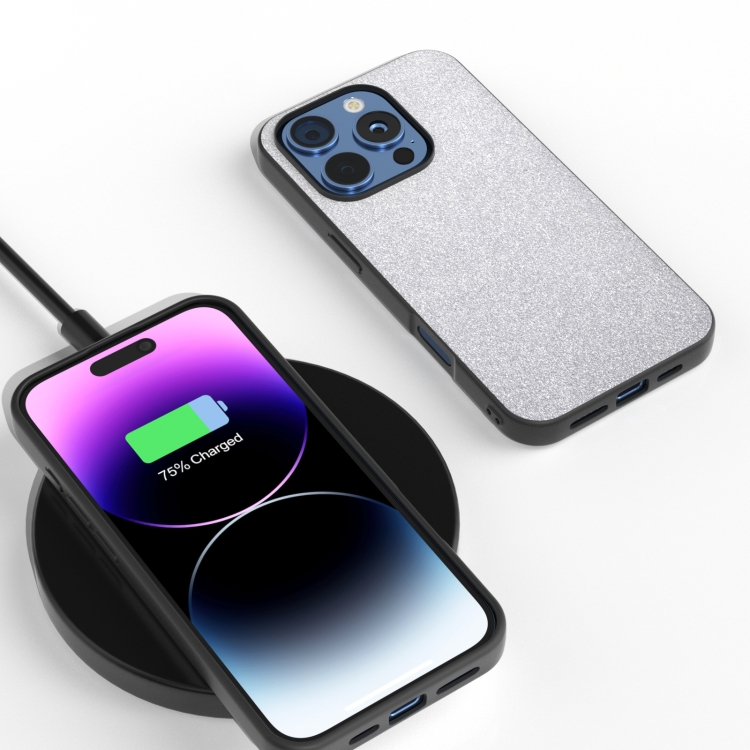 Funda para iPhone 16 Pro Max Marco Negro Purpurina Prueba de Golpes (Plateada)