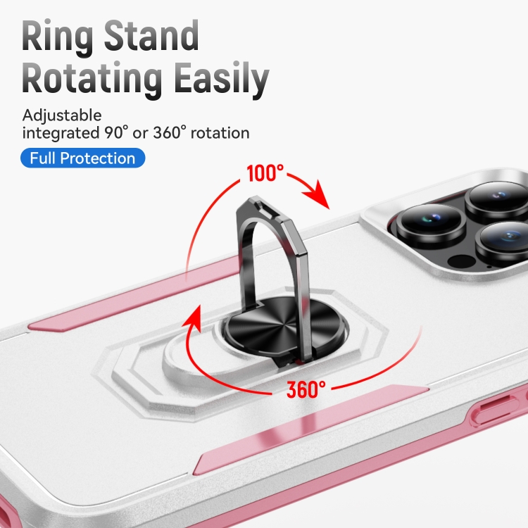 Funda para iPhone 16 Pro Pioneer Armor Policarbonato Resistente TPU con Soporte (Blanco y Rosa)