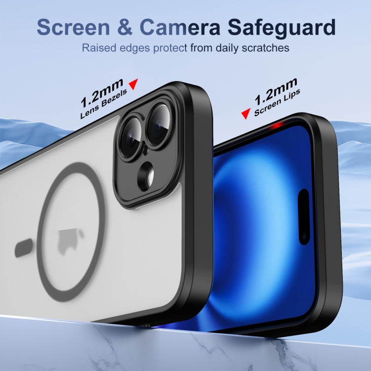 Funda para iPhone 16 Translúcida con Tapa Esmerilada y Botón de Inteligencia Artificial (Negra)