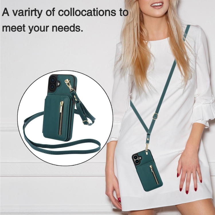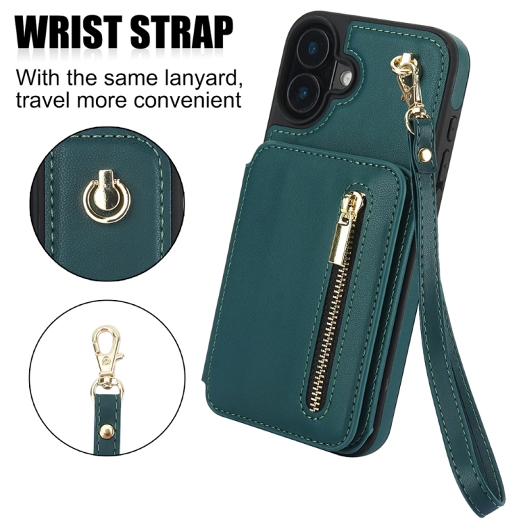 Funda para iPhone 16 Ym006 con Cremallera y Doble Cordón (Verde)