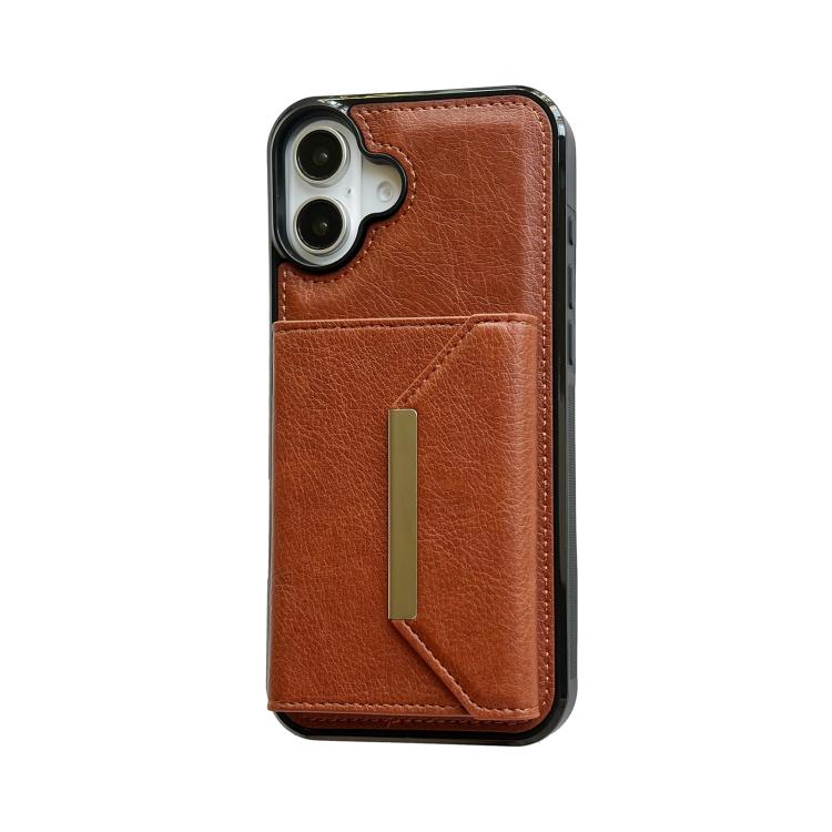 Funda para iPhone 17 con hebilla metálica de color sólido y ranuras para tarjetas (marrón)