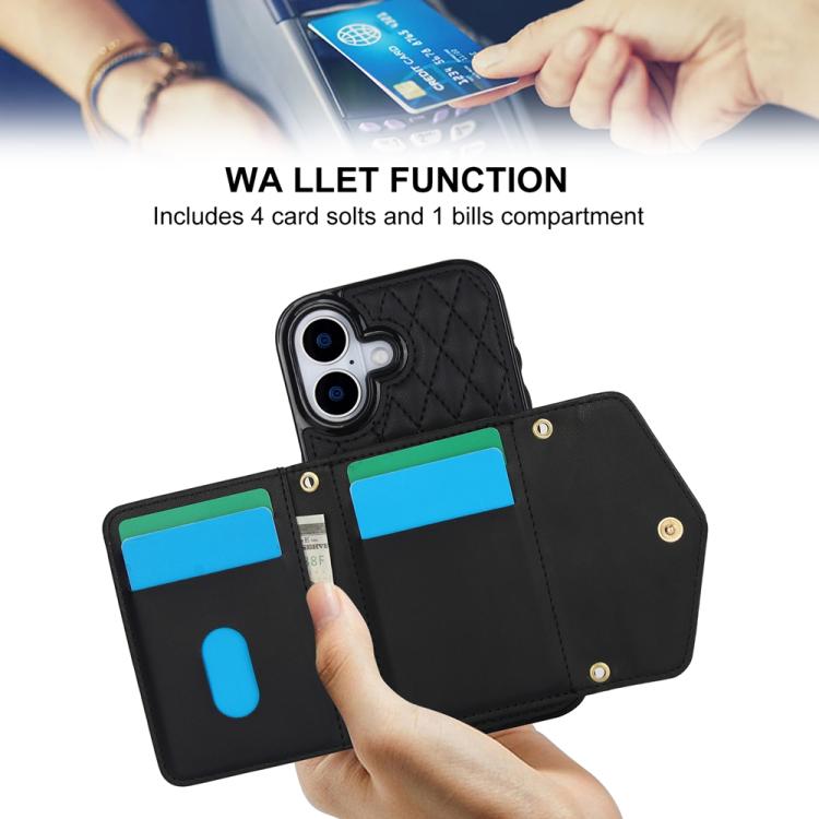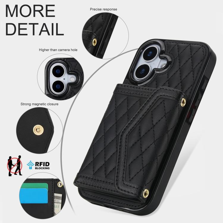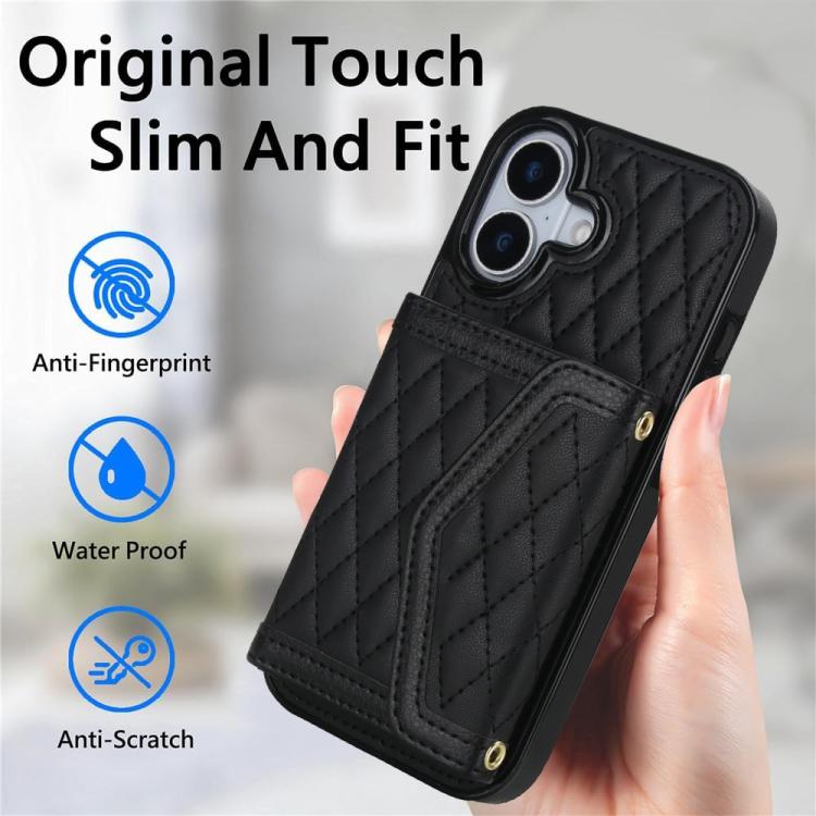 Funda para iPhone 17 con textura rómbica y cordón largo (negra)