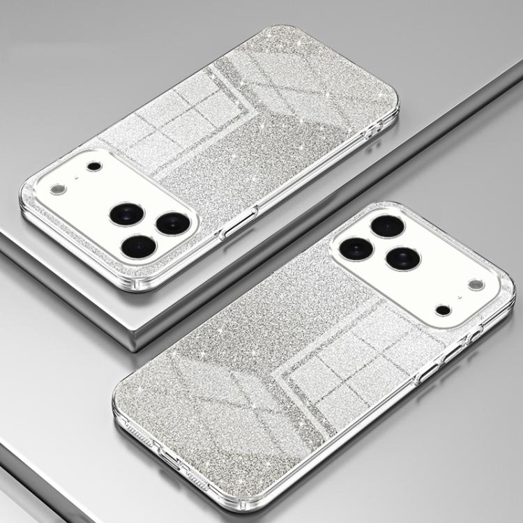 Funda para iPhone 17 Pro con purpurina en polvo degradado y galvanizada (transparente)