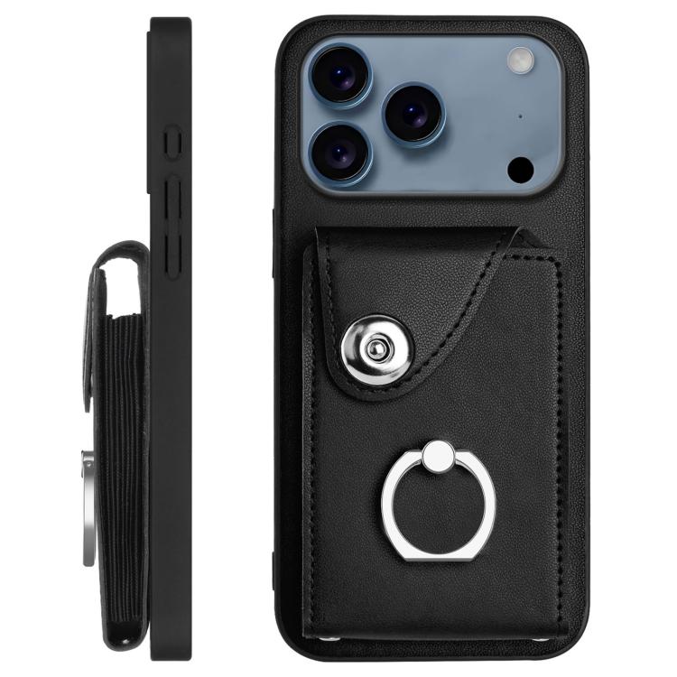 Funda para iPhone 17 Pro con tarjetero, anilla y cordón largo (negra)