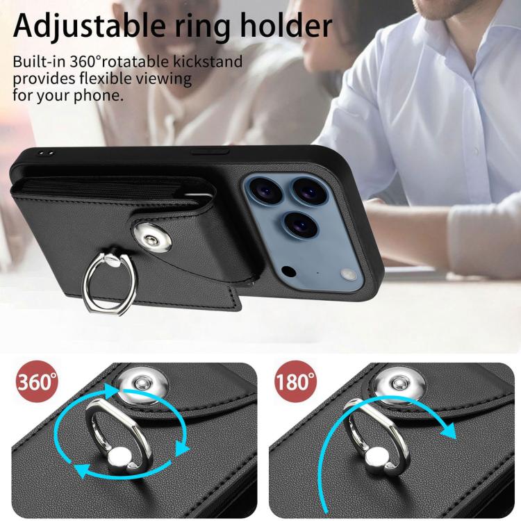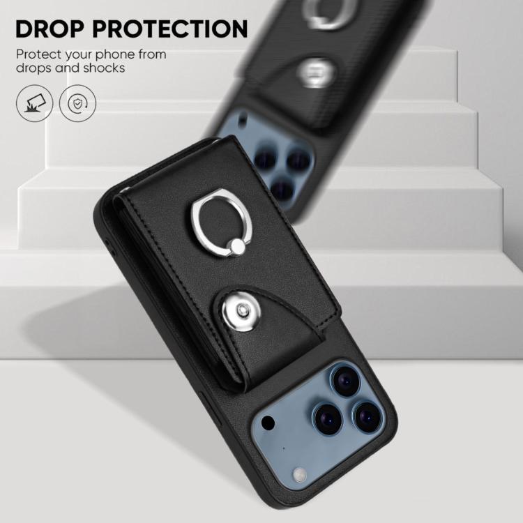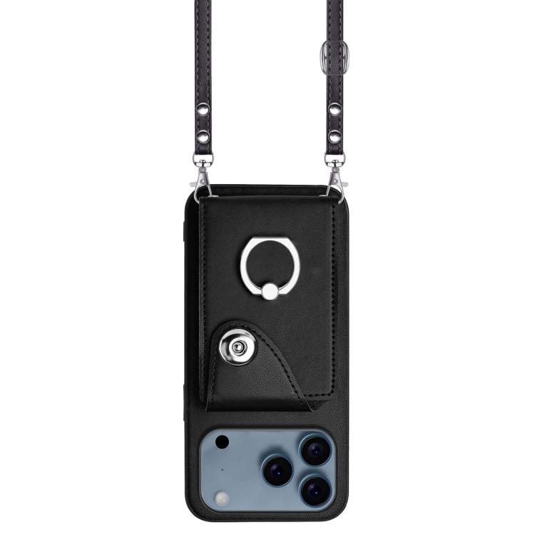 Funda para iPhone 17 Pro Max con tarjetero, anillo y cordón largo (negro)