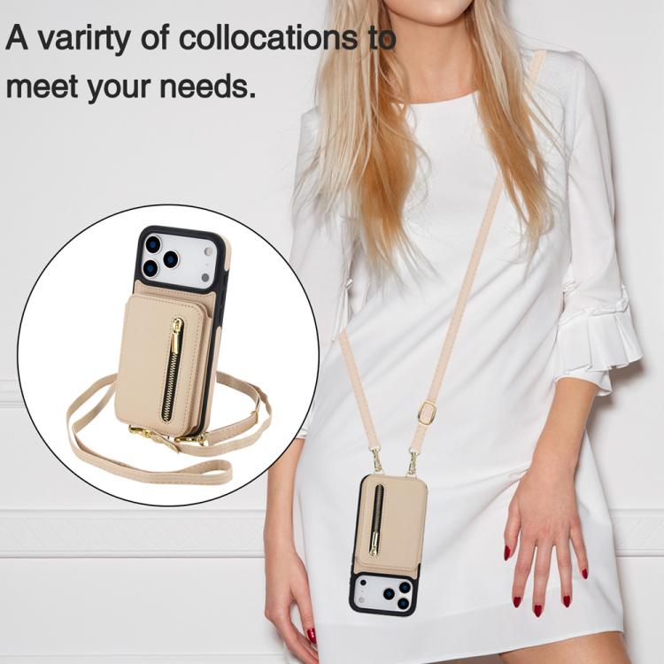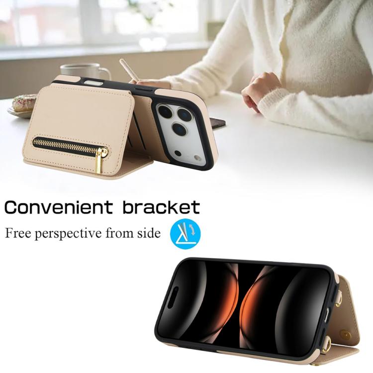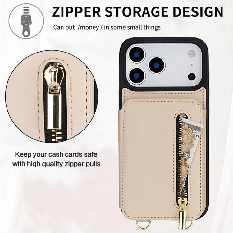 Funda para iPhone 17 Pro Max YM006 con cremallera y doble cordón (albaricoque)