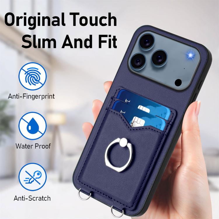 Funda para iPhone 17 Pro R20 con anillo de cuerda y tarjetero (azul)