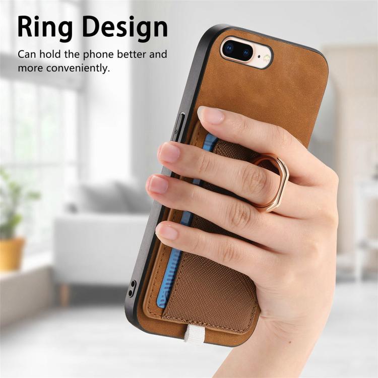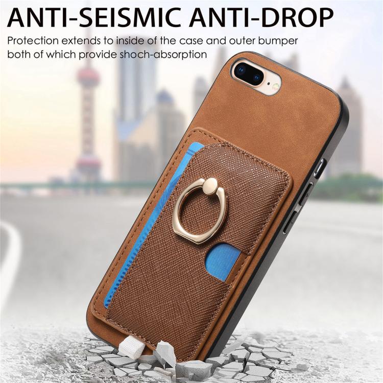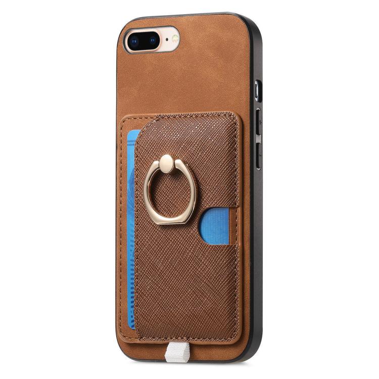 Funda para iPhone 7 Plus/8 Plus con Ranuras para Tarjetas Diseño Retro Cruz de Cuero (Marrón)