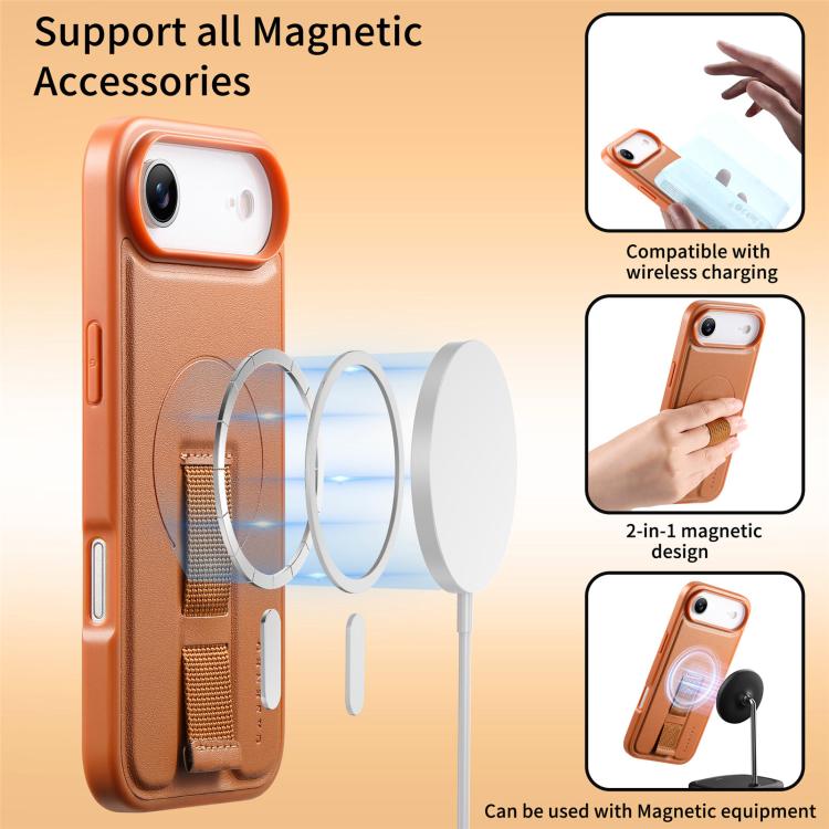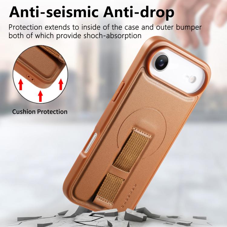 Funda para iPhone Air con correa de muñeca Neo Finger Grip y parte trasera MagSafe (marrón)