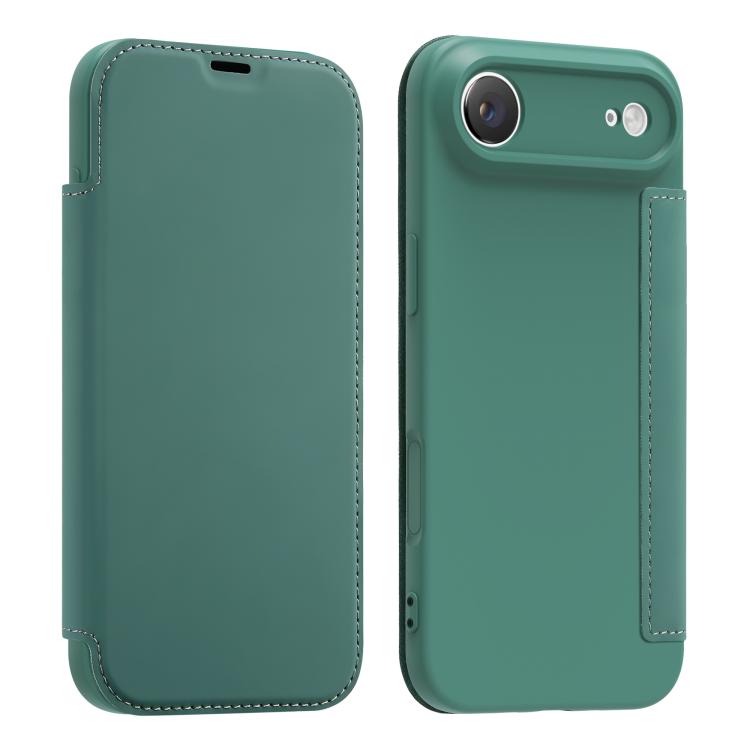Funda para iPhone Air con tacto de piel sintética tipo Liquid Skin y ranuras para tarjetas (verde oscuro)