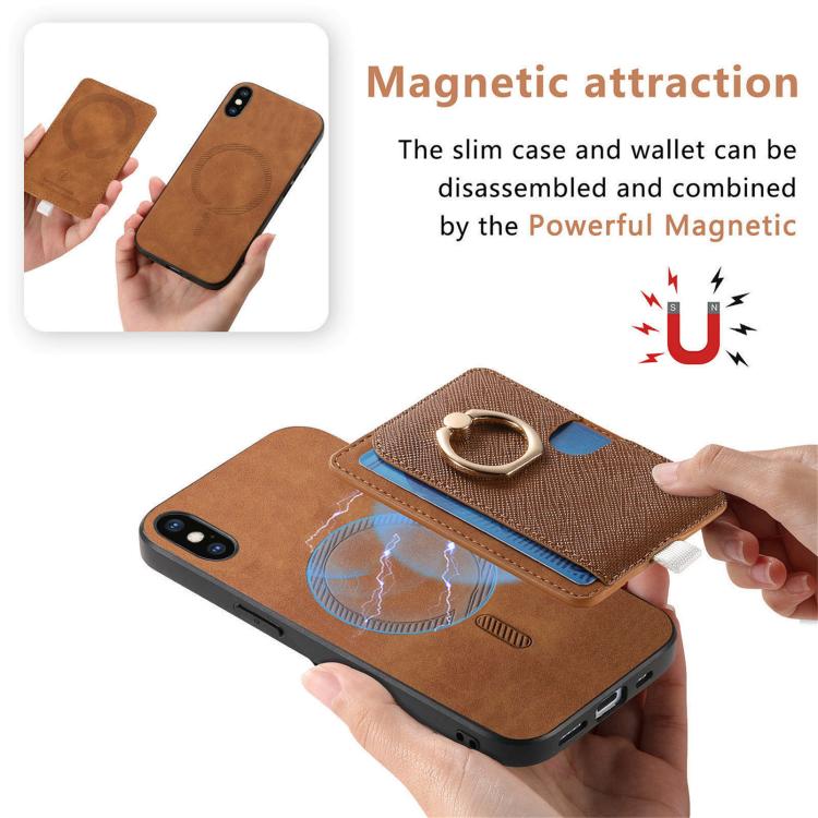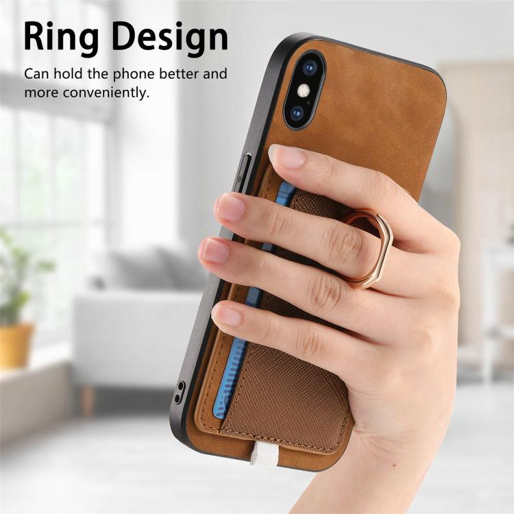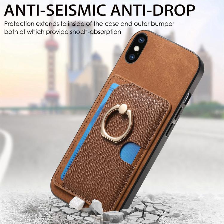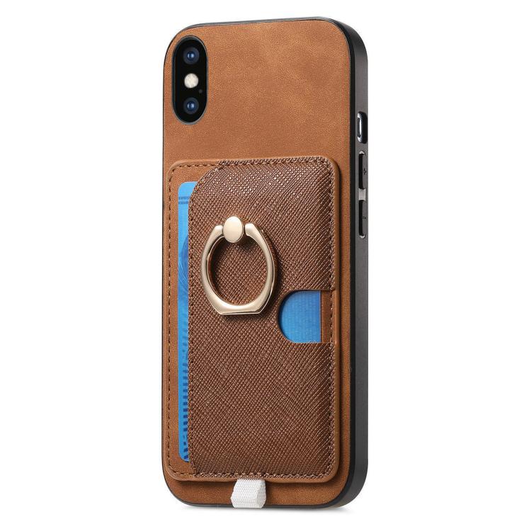 Funda para iPhone Xs Max con Ranuras para Tarjetas y Diseño Retro de Cruz y Anillo Lateral (Marrón)