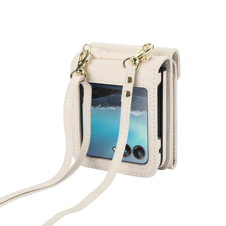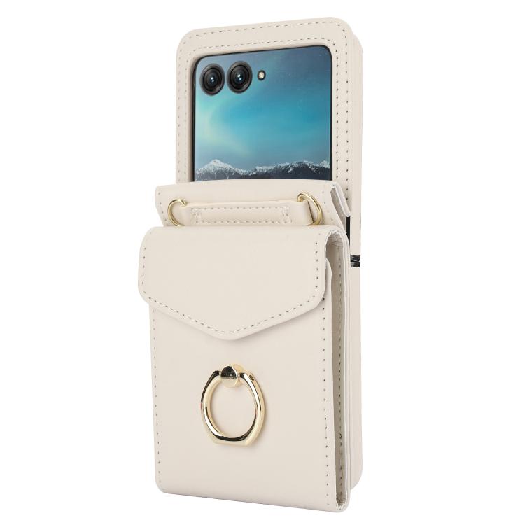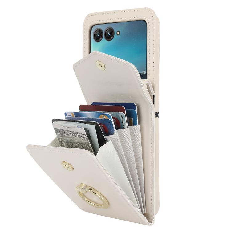 Funda para Motorola Razr 40 Ultra con ranura para tarjeta RFID y soporte de anillo (beige)