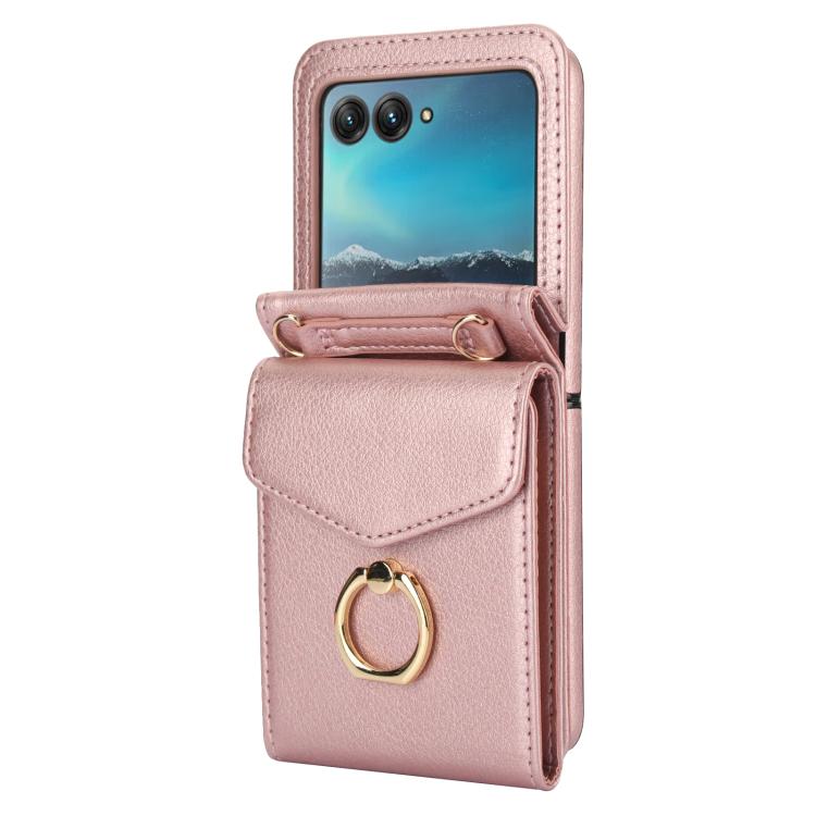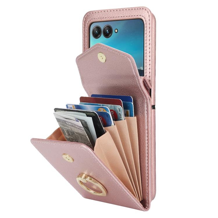 Funda para Motorola Razr 40 Ultra con ranura para tarjeta RFID y soporte de anillo (oro rosa)