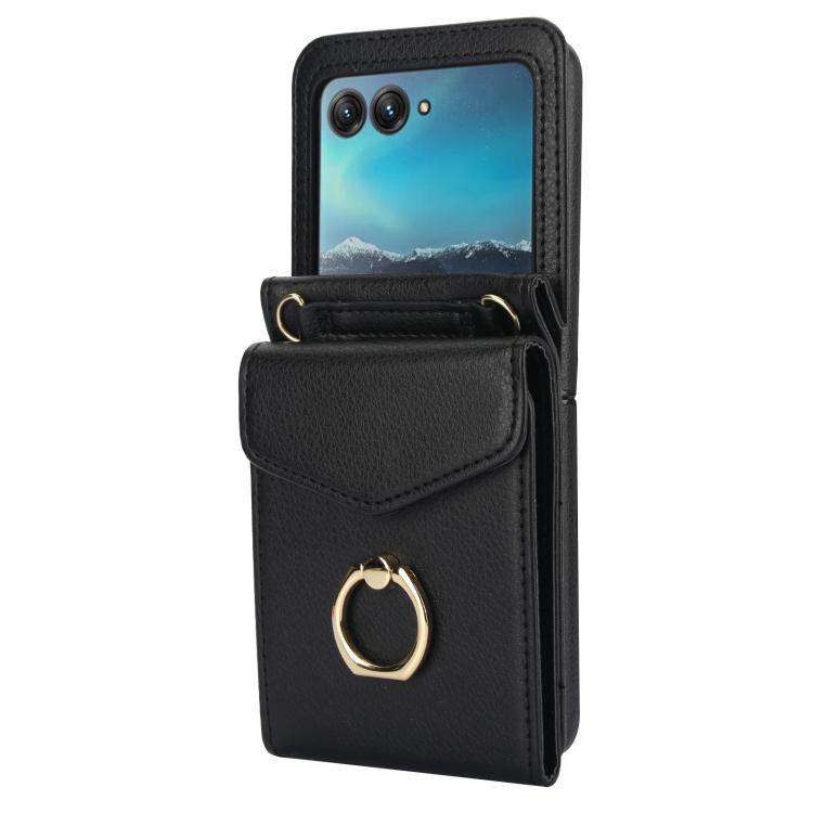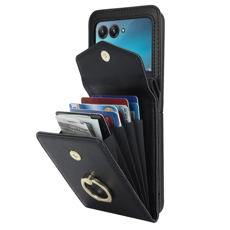 Funda para Motorola Razr 50 Ultra con ranura para tarjeta RFID y soporte de anillo (negra)