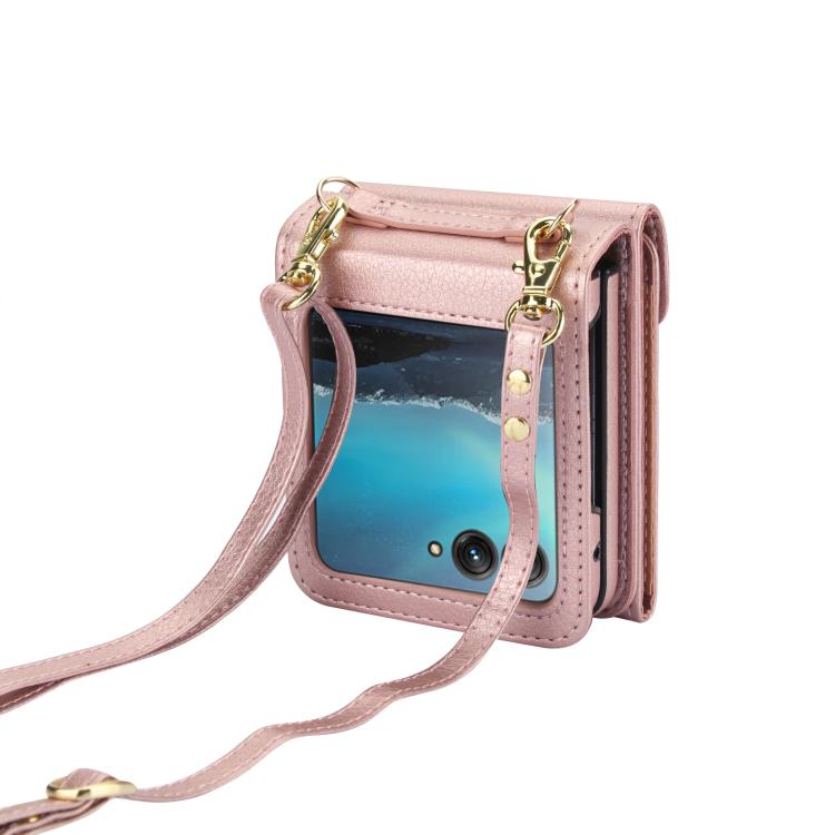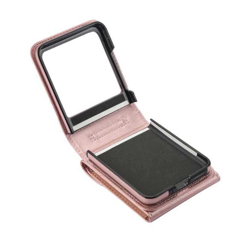 Funda para Motorola Razr 50 Ultra con ranura para tarjeta RFID y soporte de anillo (oro rosa)