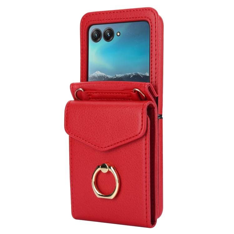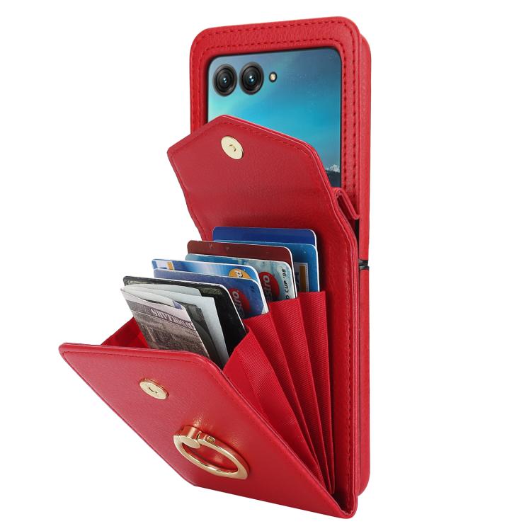 Funda para Motorola Razr 60 Ultra con ranura para tarjeta RFID y soporte de anillo (roja)